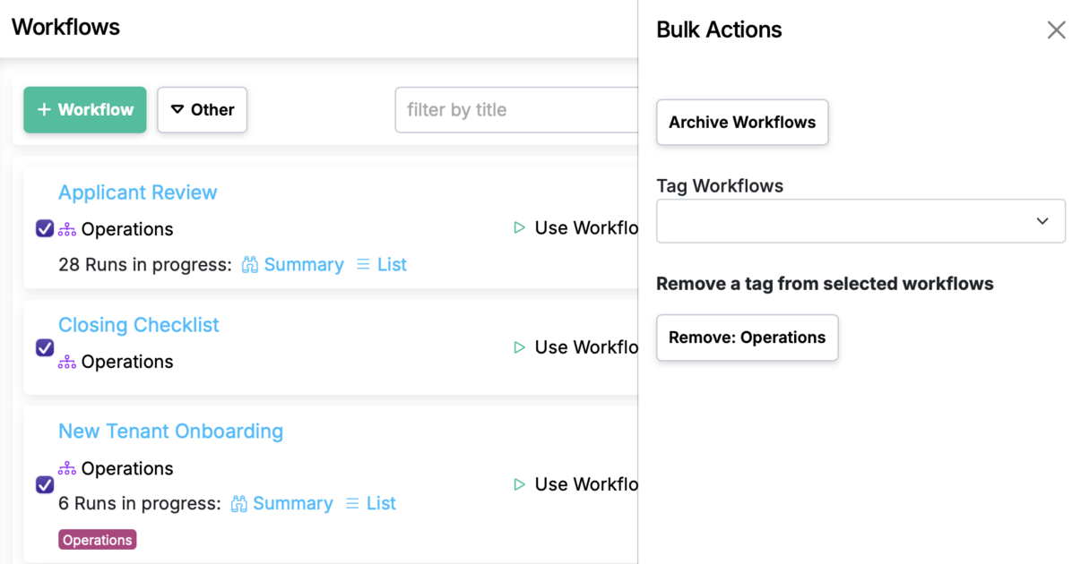 Select multiple workflows and apply bulk Archive or Tag actions in one