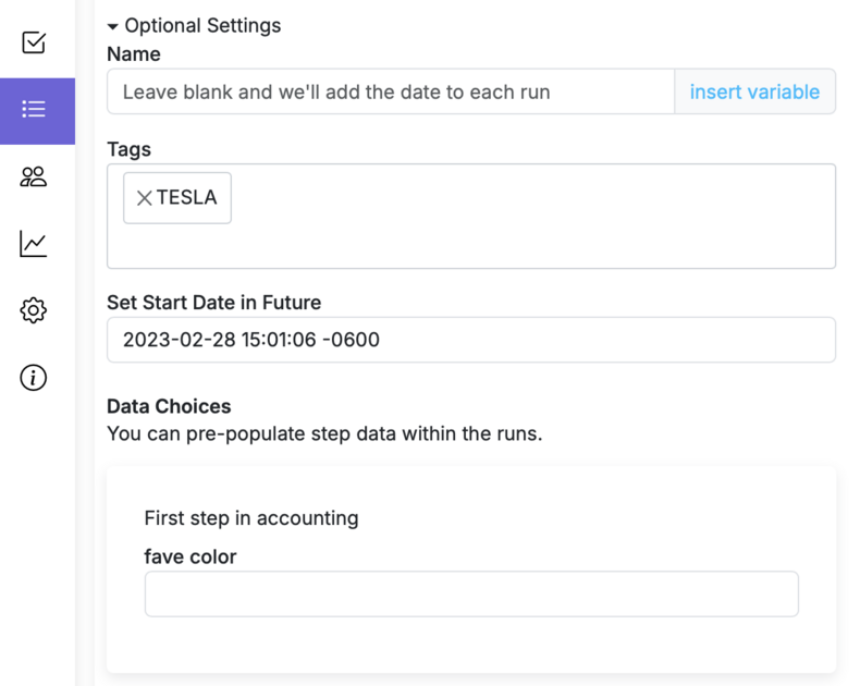 The Initiator Role lets you automatically assign steps in the workflow to the person creating the new run.