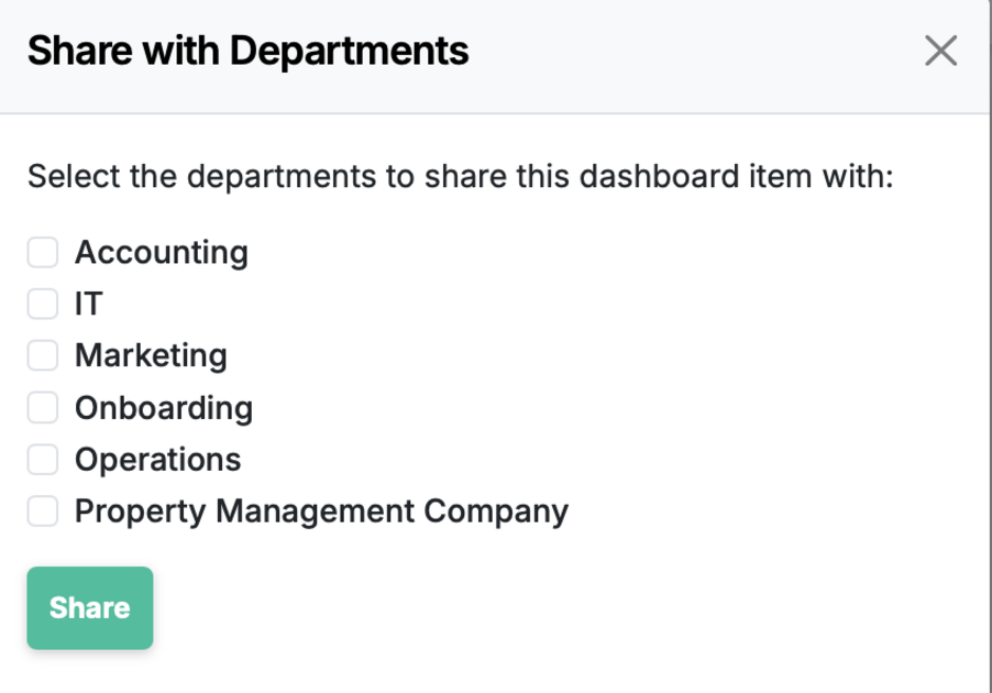 Share any dashboard item with teammates in your account, so everyone can see the same lists